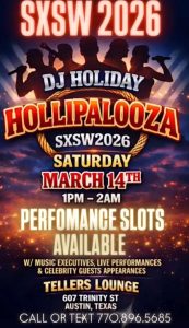 Book Your SXSW Performance Today DJ Holiday’s Stage Hollipalooza Austin 2026 ATTN ARTISTS & PERFORMERS! READY TO HIT THE SXSW ...