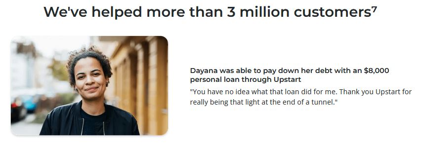 Unlike traditional lenders, Upstart goes beyond credit scores when determining loan eligibility and uses non-conventional metrics such as experience and education3. A personal loan through Upstart allows borrowers to quickly receive the money that they need and provides them with monthly payment options. Plus, there is no prepayment fee or penalty if a borrower decides to pay their loan off early!
