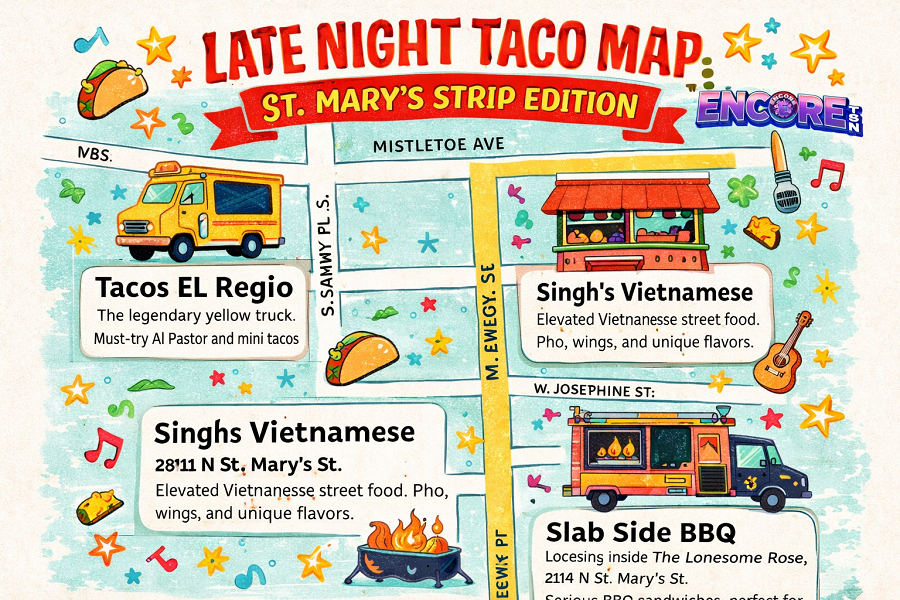 - St. Mary’s Strip: The “Nightlife Artery.” A collection of dive bars, live music clubs (The Mix, Lonesome Rose), and late-night taco trucks. Be Sure To See: The St. Mary’s Strip Survival Guide: How To Own the Night